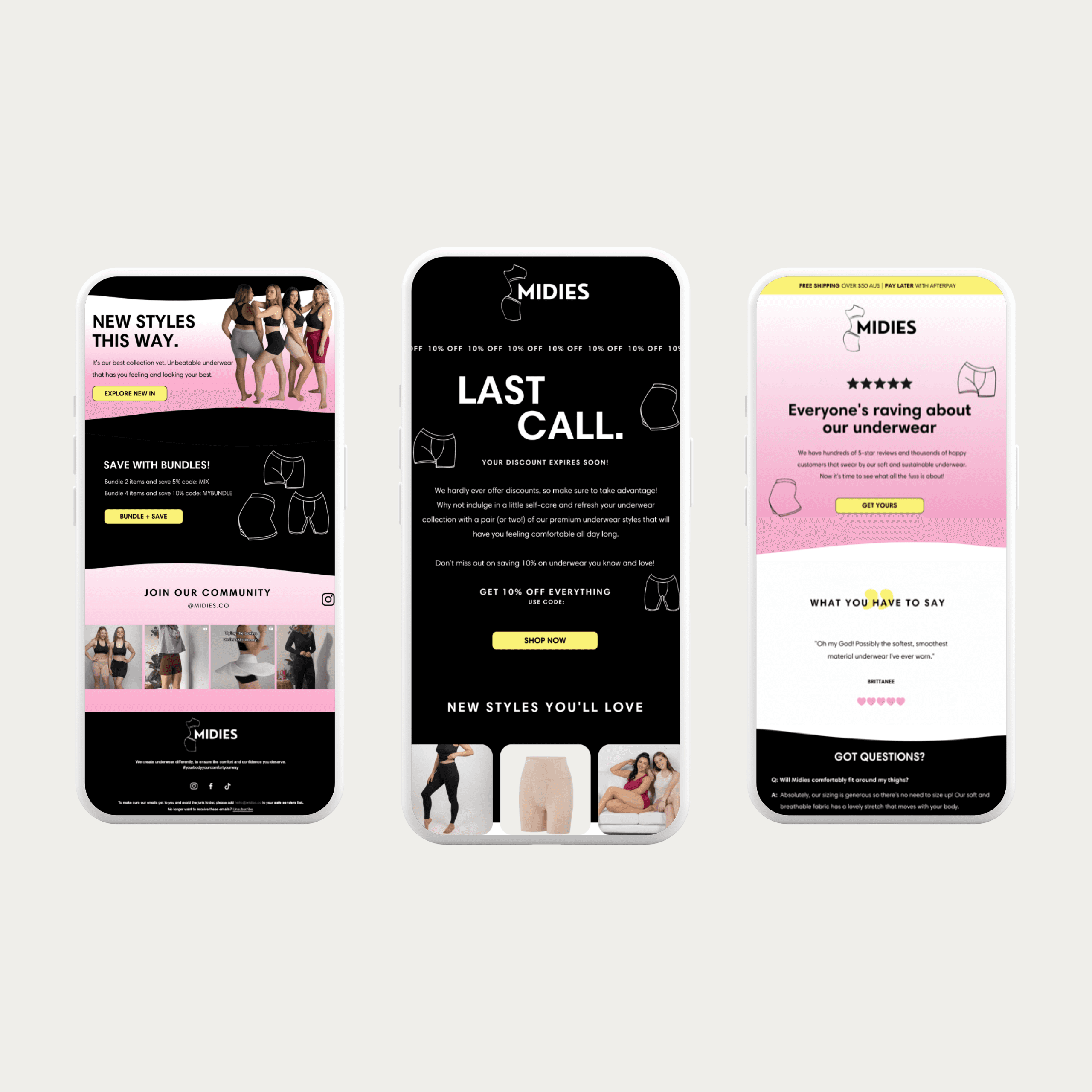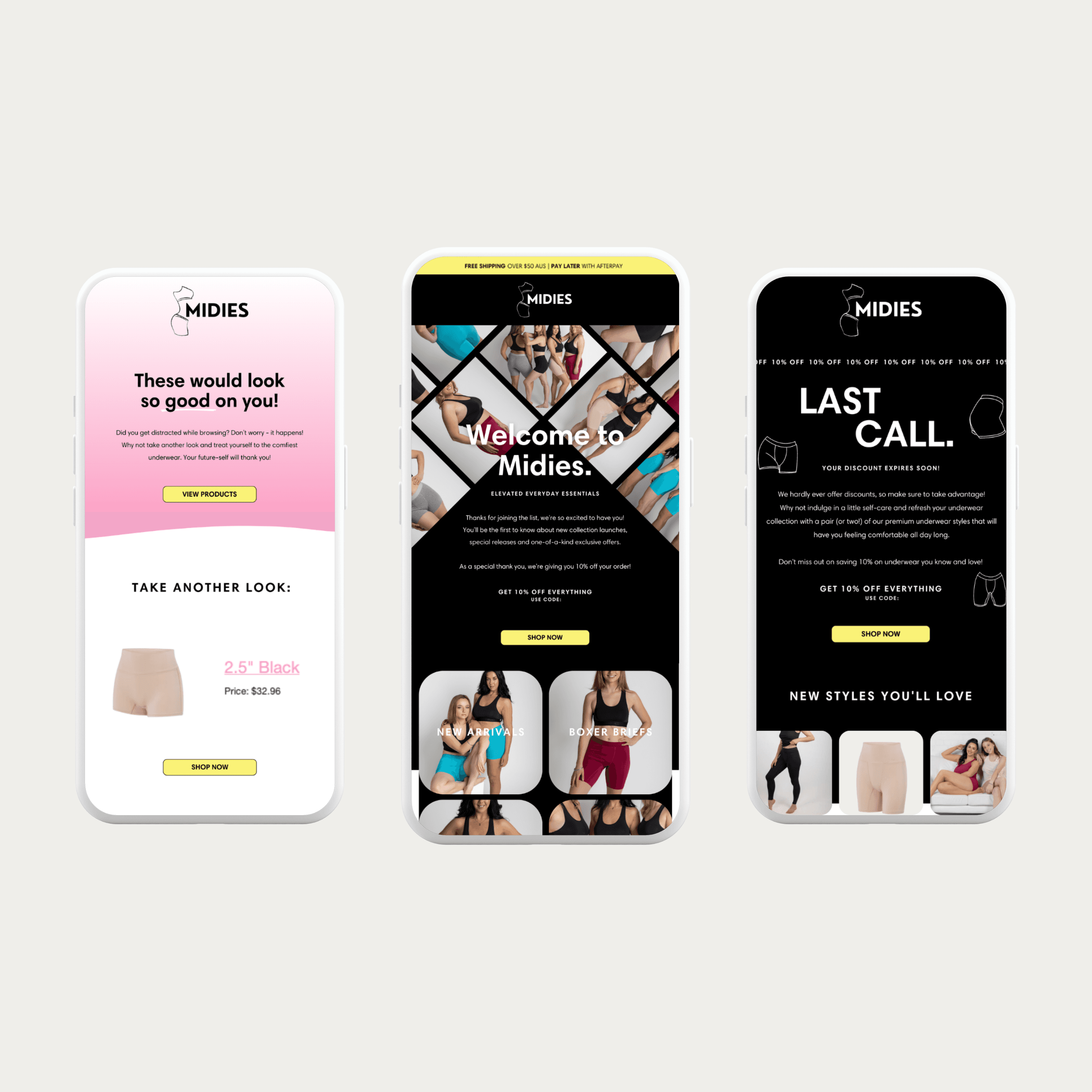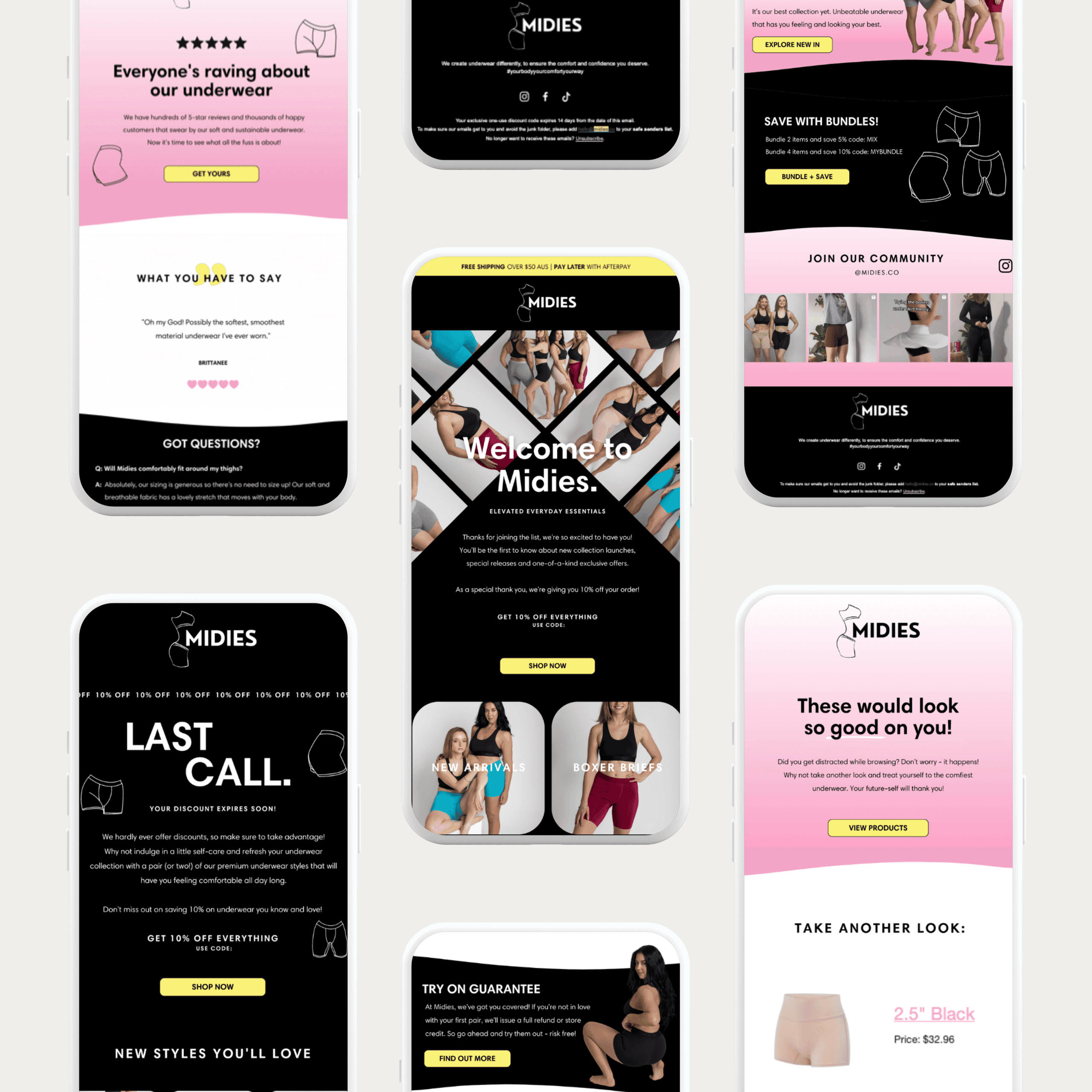 Midies had the key flows in place, but after a major rebrand, their email setup needed a complete overhaul.