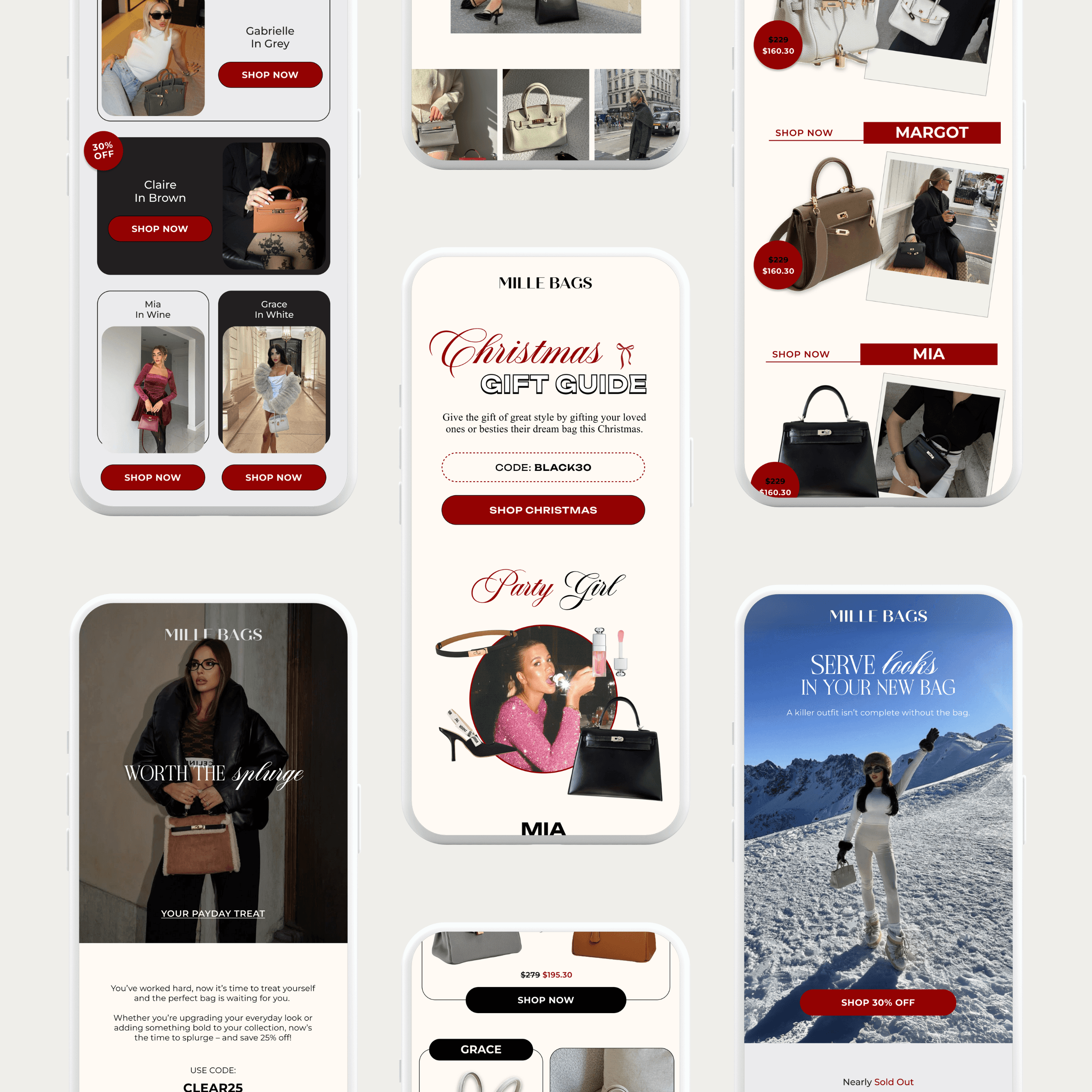 Mille Bags had noticed that their email marketing revenue was on a downward trend, reaching a low of just 17% of revenue attributed to email. With Black Friday coming up in just a few weeks, they knew they needed help in this area to meet their ambitious revenue goals.