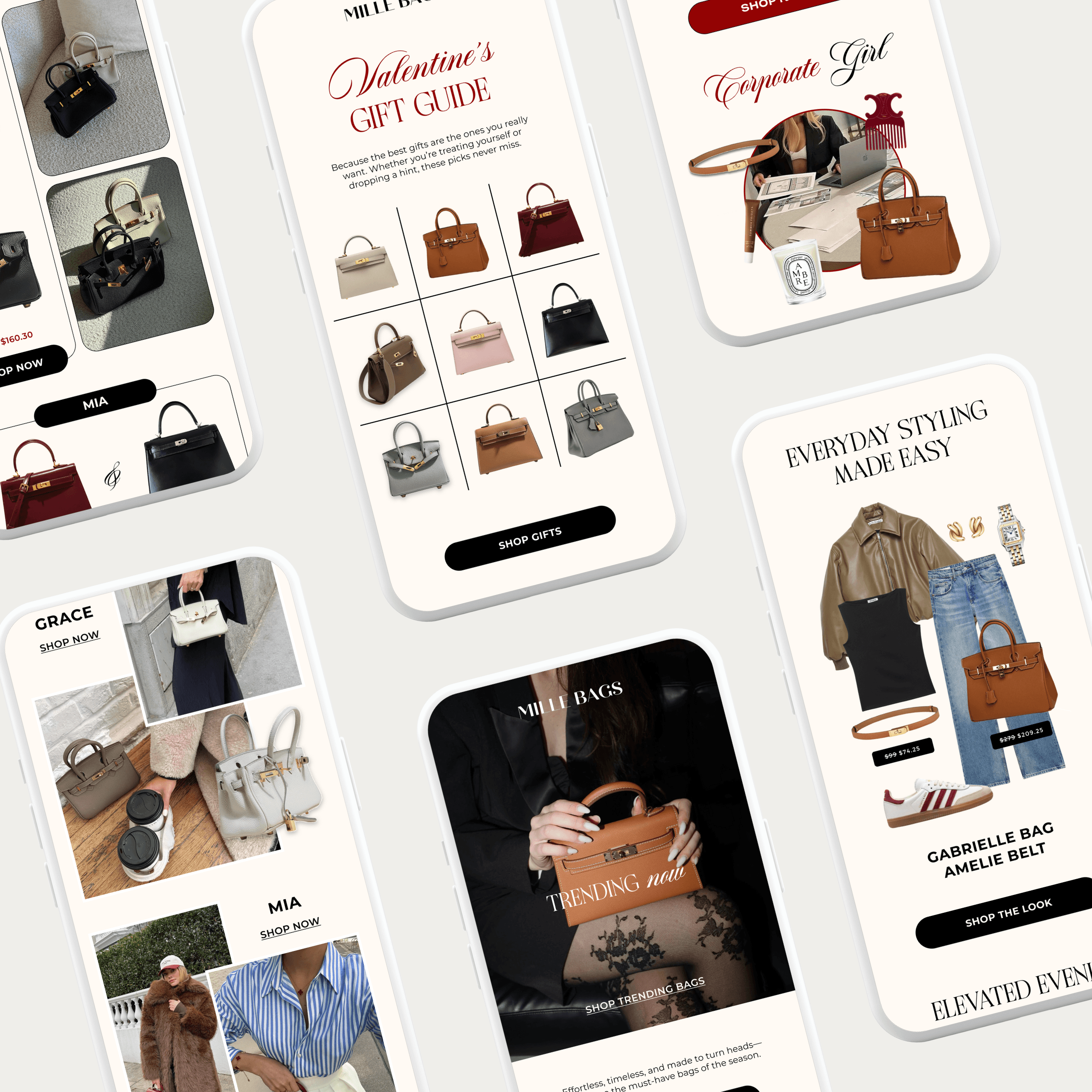 Mille Bags are a mid-range women’s handbag and accessories brand. They sell worldwide, with the U.K, U.S, and Germany being their primary markets.