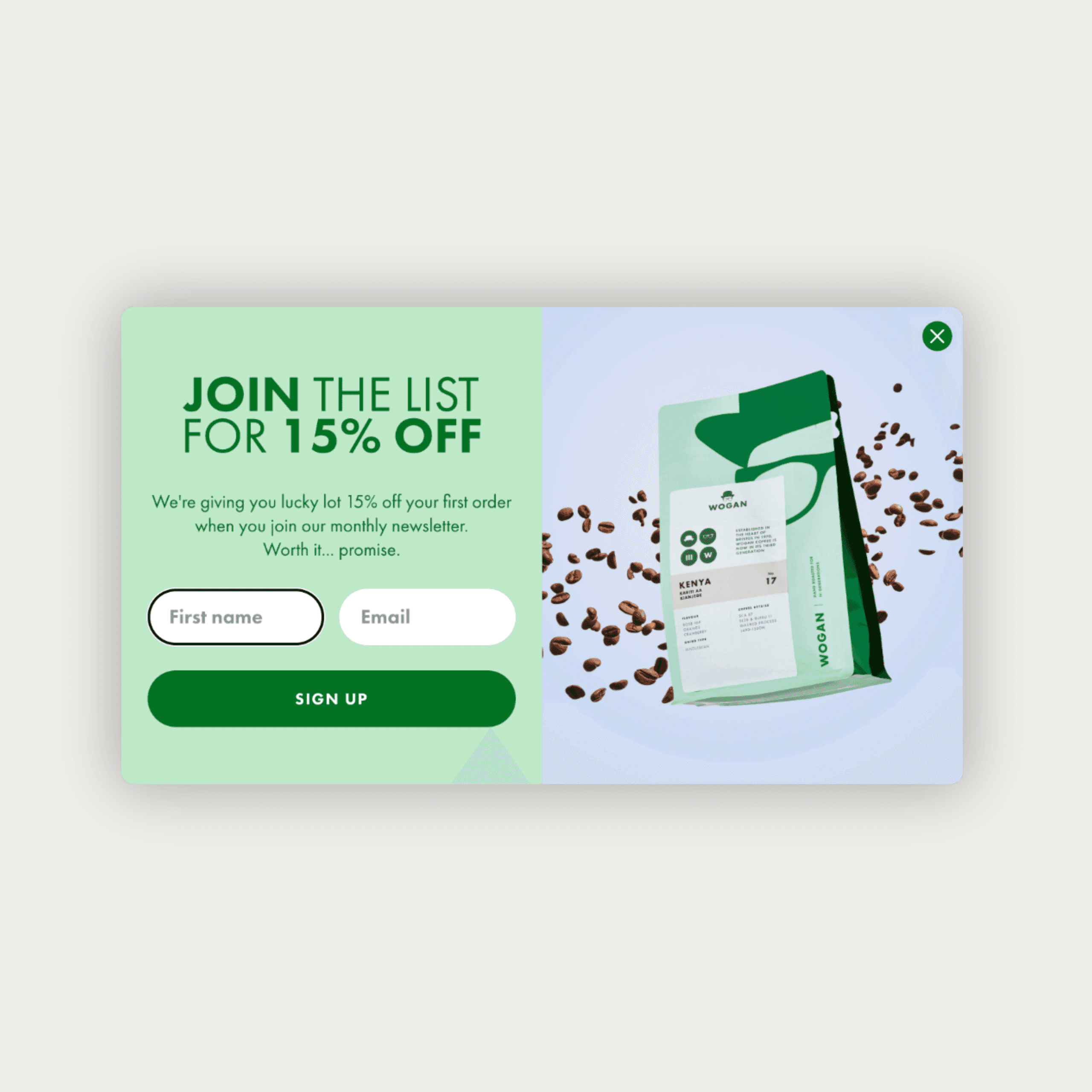 Pop-Up: Implemented a high-converting pop-up to drive sign-ups and build an engaged email list.